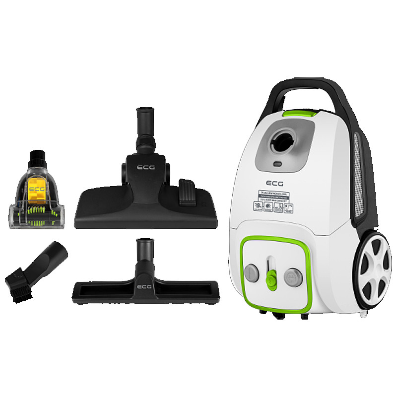 V balení okrem samotného vysávača ECG VP S3010 a teleskopickej trubice nastaviteľnej na 54 – 92 cm nájdete aj praktické príslušenstvo. Nechýba tu podlahová hubica s výsuvnou kefou, parketová hubica s plastovým vlasom (PP) alebo 2 v 1 kombinovaná zúžená hubica a prachová kefa. Majitelia domácich maznáčikov iste uvítajú mini PET turbo kefu.
