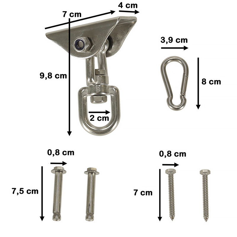 Táto súprava obsahuje všetky potrebné diely na zavesenie vašej vysnívanej hojdacej siete alebo kresla!