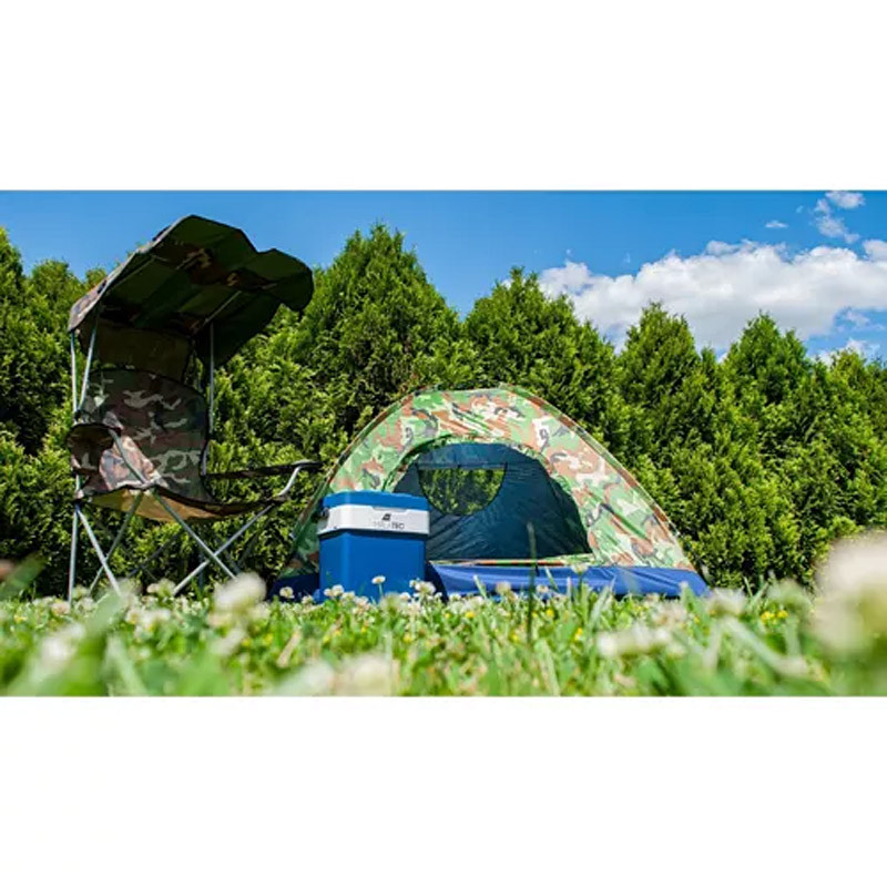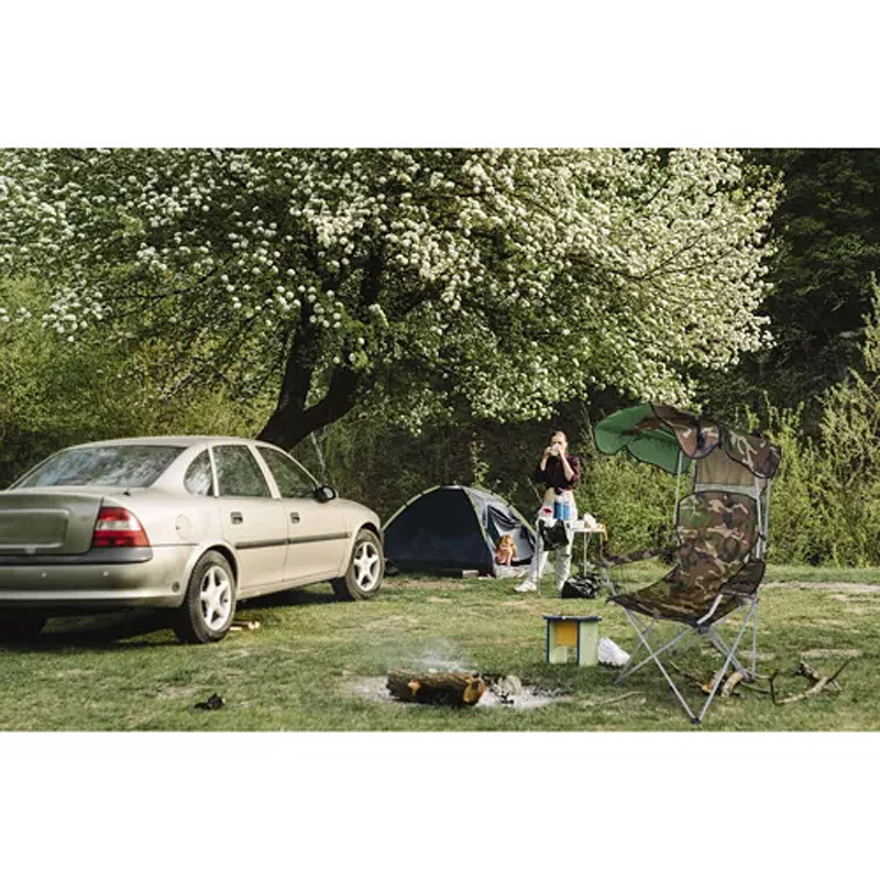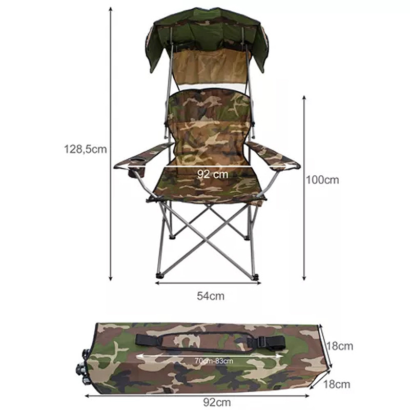 Stolička je vybavená špeciálnou, nastaviteľnou strieškou, ktorá vám poskytne dostatočné množstvo tieňa. Strieška je odnímateľná - môžete ju kedykoľvek demontovať. Veľké rozmery kresla vám umožnia cítiť sa pohodlne. Vďaka ergonomickému dizajnu stoličky sa budete aj po mnohých hodinách sedenia cítiť skvele.