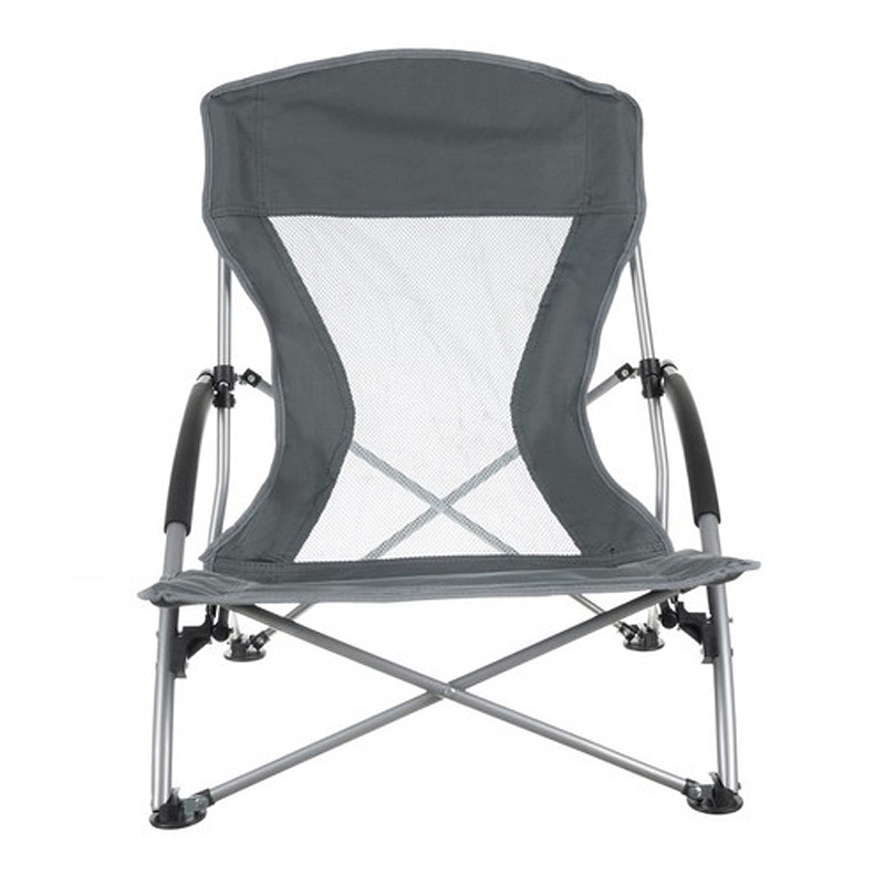 Nízka rozkladacia turistická stolička - kompaktná, pohodlná, stabilná, podrúčky potiahnuté penou, priedušný chrbát, odolný poťah, nosnosť 100 kg