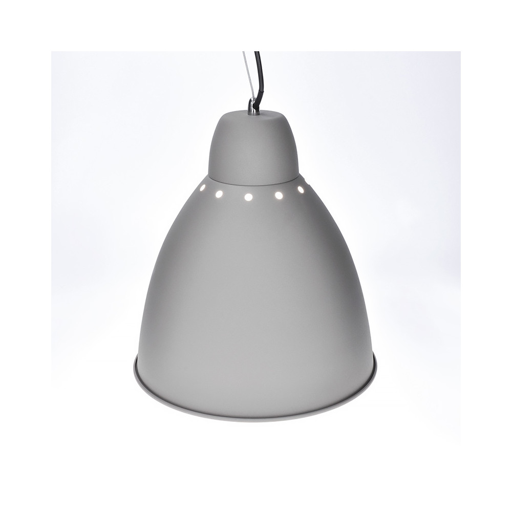 Sivý závesný kovový luster Verona Uno ‒ vhodný pre žiarovku: 1x E27/60W max. (nie je súčasťou) • napätie: 230V • materiál: oceľ • farba: matná šedá • priemer tienidla: 29cm • celková dĺžka svietidla: 178cm (prívodný kábel možno skrátiť)
