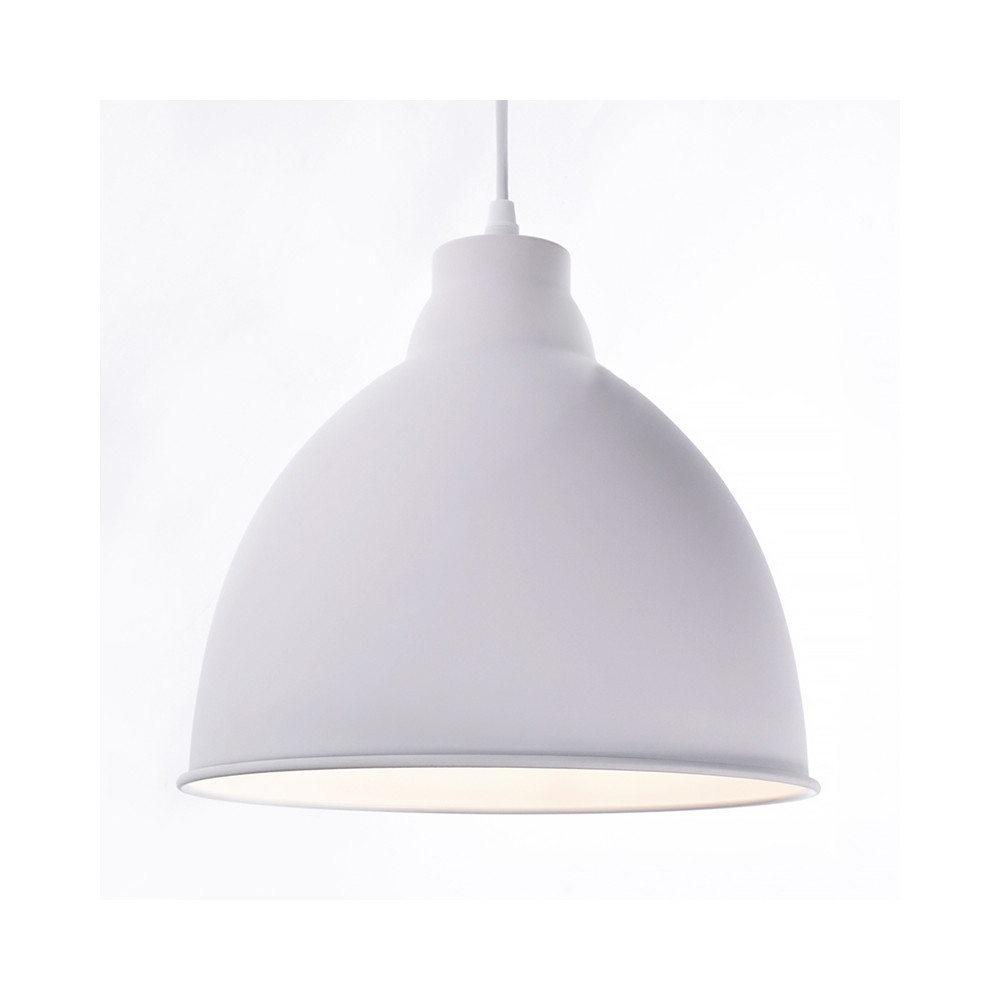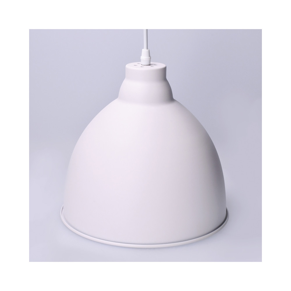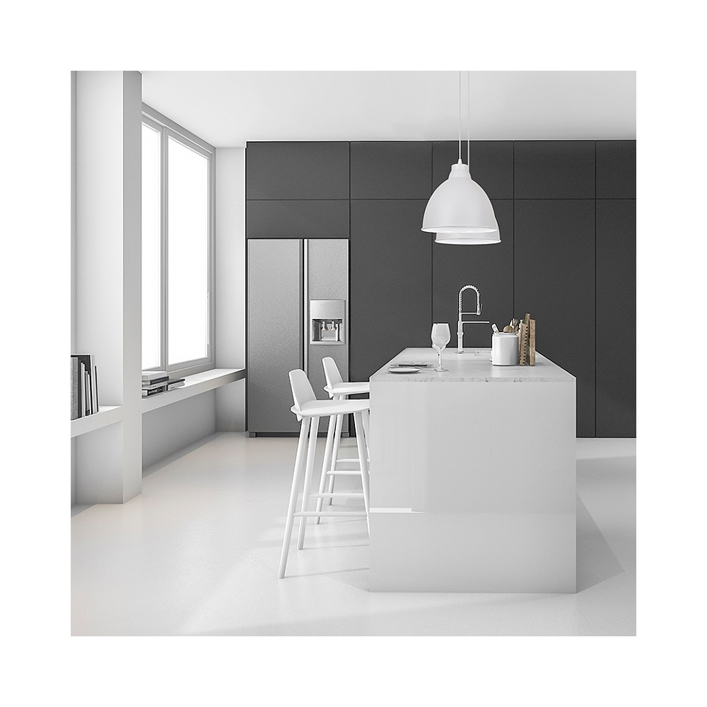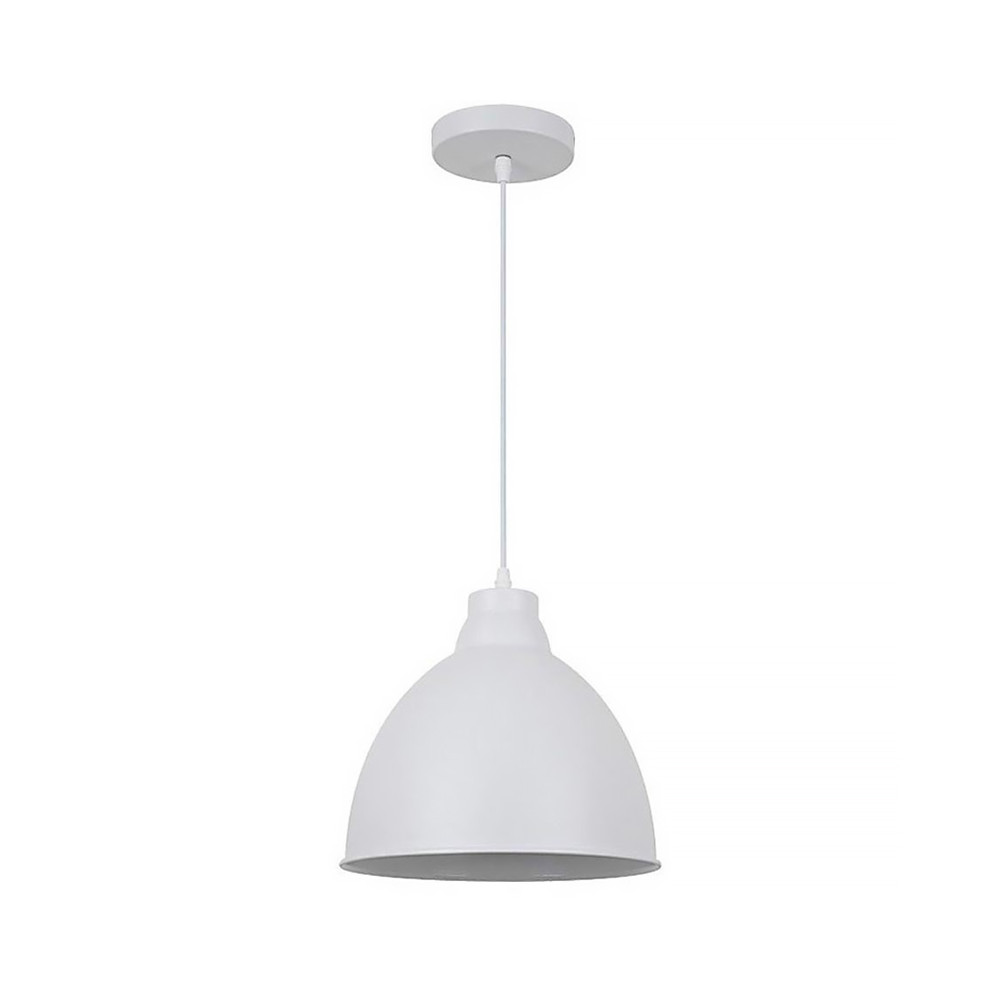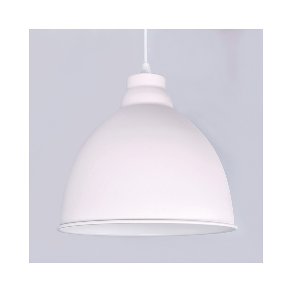 Závesný biely kovový luster Trento ‒ pre žiarovku: 1x E27/60W max. (nie je súčasťou) • napätie: 230V • materiál: oceľ • farba: matná biela • priemer tienidla: 26cm • dĺžka tienidla: 24cm • celková dĺžka svietidla: 180cm (prívodný kábel možno skrátiť)