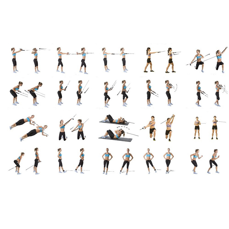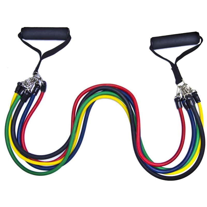 Sada obsahuje päť elastických gúm s rôznou elasticitou, ktoré je možné podľa potreby pripevniť na rukoväte.