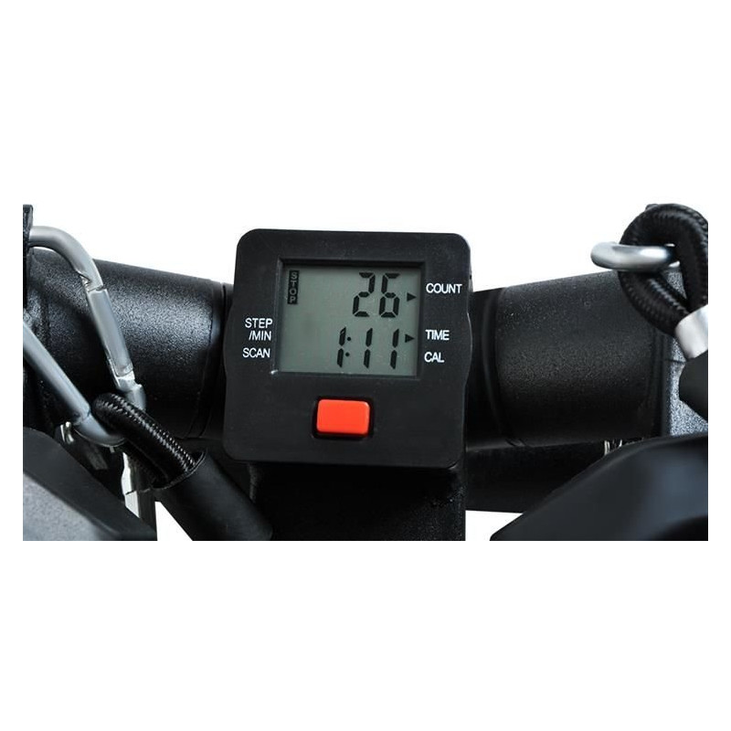 Nezaberá veľa miesta a napriek tomu umožňuje vykonávať intenzívne cvičenie. Jasný LCD displej má 4 funkcie monitorovania tréningu. Započítava vykonané opakovania, čas cvičenia, spálené kalórie , aj priemerné opakovanie za minútu, čo umožní udržať požadované tempo. Pripojené laná s rukoväťami navyše umožňujú vykonávať ručné cvičenia súčasne.