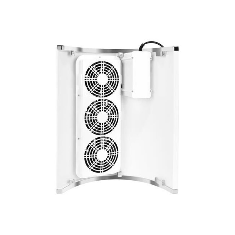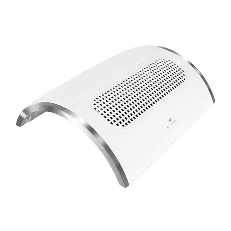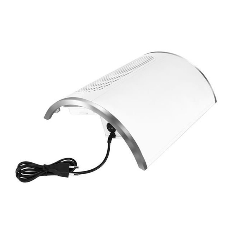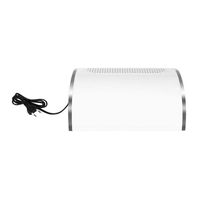 Pohlcovač prachu na manikúru má opierku dlaní z ekologickej kože vyplnenú mäkkou špongiou pre výnimočný komfort pri ošetrení, vďaka čomu sa aj ľahšie udržuje v čistote. Je to tiež veľmi jednoduché zariadenie - stačí prepnúť jeden spínač a aktivujú sa 3 ventilátory a výkonný pohlcovač prachu začne pracovať s plným výkonom 40 W. Kozmetický pohlcovač prachu je nielen funkčný, ale aj estetický. Módny dizajn, biela farba a prídavok ekologickej kože z nej robia zaujímavý doplnok do každého kozmetického salónu alebo domácej kozmetickej výbavy.