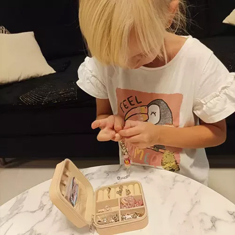 SADA ŠPERKOV – Vaše dieťa si vďaka nim môže vyrobiť vlastné ozdoby, náramky či náhrdelníky, ktoré môže darovať niekomu blízkemu alebo ich môže samo nosiť. Celá sada je zabalená v krásnej krabičke na zips, navyše s priehradkami, háčikmi a priestorom na prívesky.