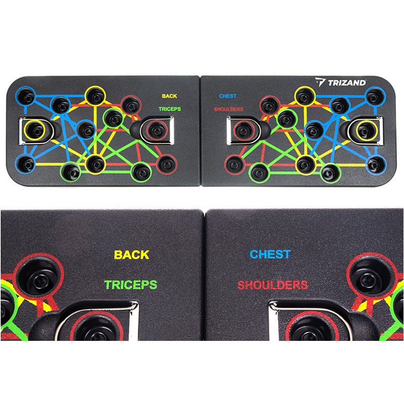DRŽADLÁ PUSH-UP A FITNESS KÁBLE - držadlá na push-up umožňujú precvičenie všetkých horných svalových skupín vhodným nastavením uhla a polohy rukovätí. Doska vám umožní vytvarovať svaly horných končatín a trupu vlastnou váhou tela a vďaka elastickým šnúrkam sa postaráte aj o svoj zadok a nohy.