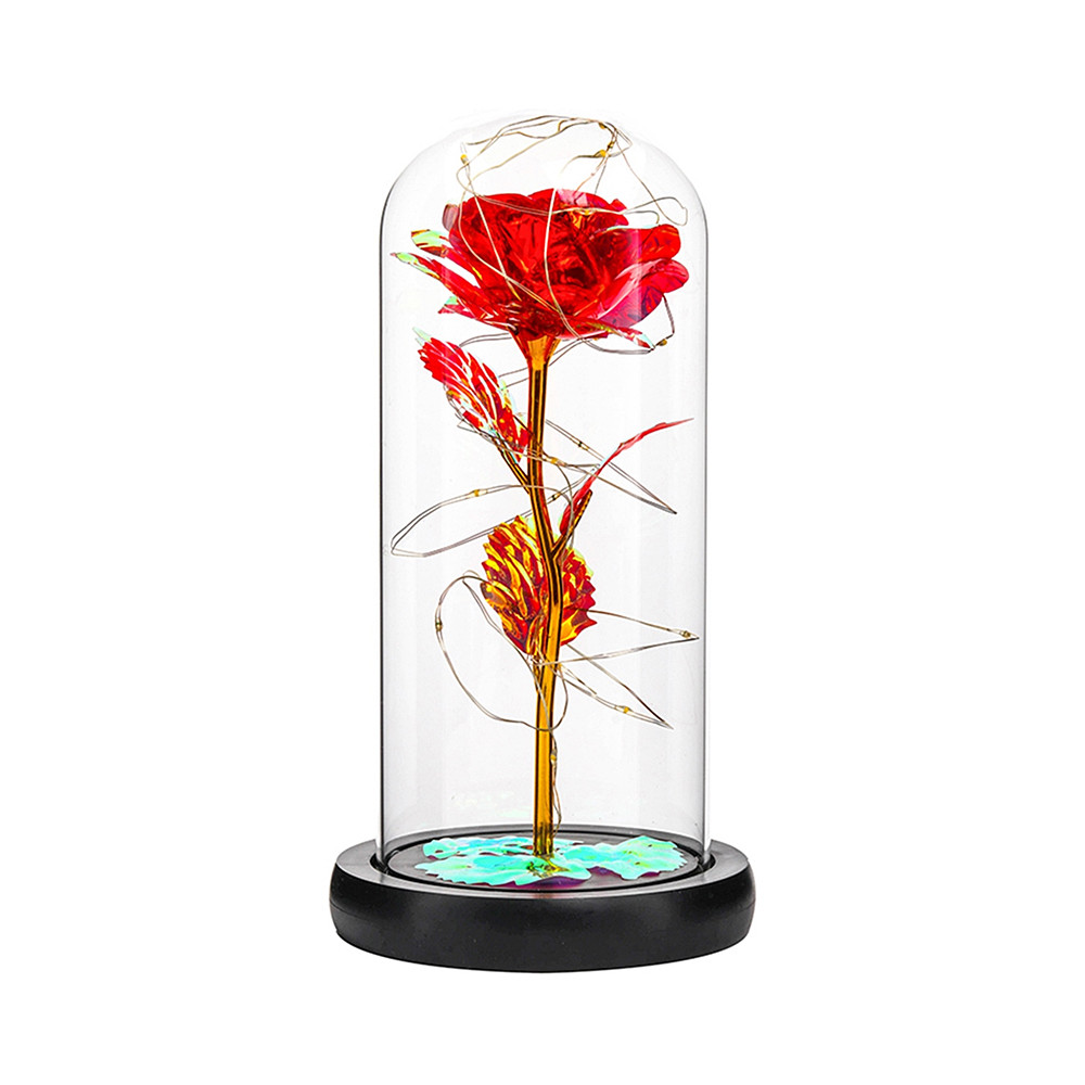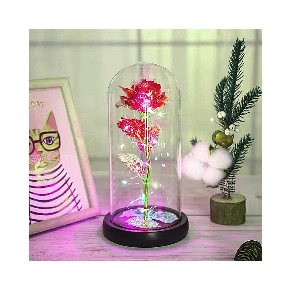 Večná ruža umiestnená v sklenenom tienidle. Doplnkové RGB LED osvetlenie robí ružu úžasnou aj po zotmení. Dodáva sa s estetickou darčekovou krabičkou. Perfektný nápad na Valentína, narodeniny alebo ako nevšedný darček.