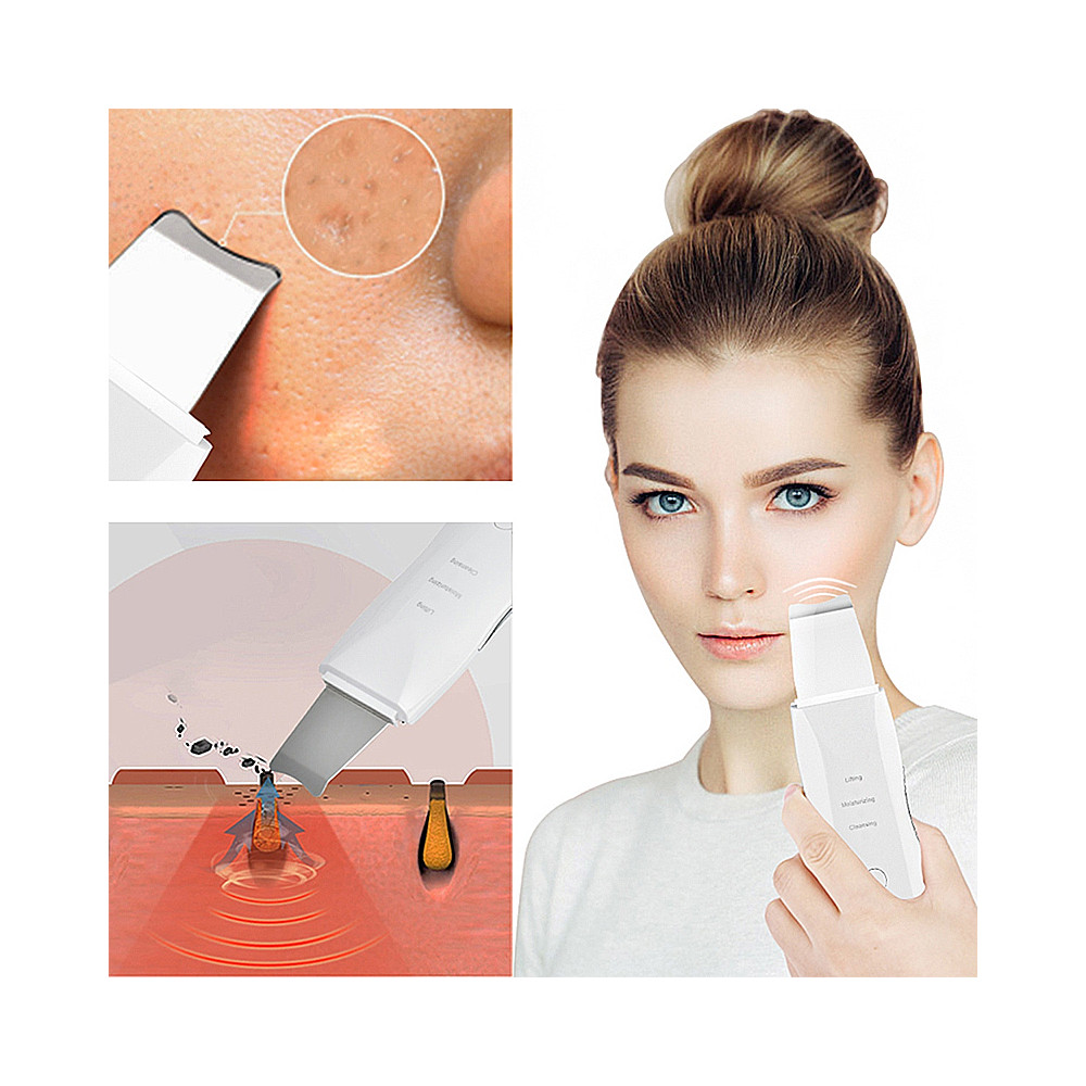 Zariadenie na vykonávanie kavitačného peelingu. Slúži predovšetkým na bezdotykové a bezbolestné čistenie tváre, odstraňovanie pórov a iných nečistôt pomocou vibrácií generovaných zariadením. Jednoducho prejdite špachtľou zariadenia po vlhkej pokožke a vibrácie s vhodnou frekvenciou vyčistia pokožku. Zariadenie je úplne bezpečné pre alergikov. Na ošetrenie nie sú potrebné žiadne chemikálie okrem čistej vody.