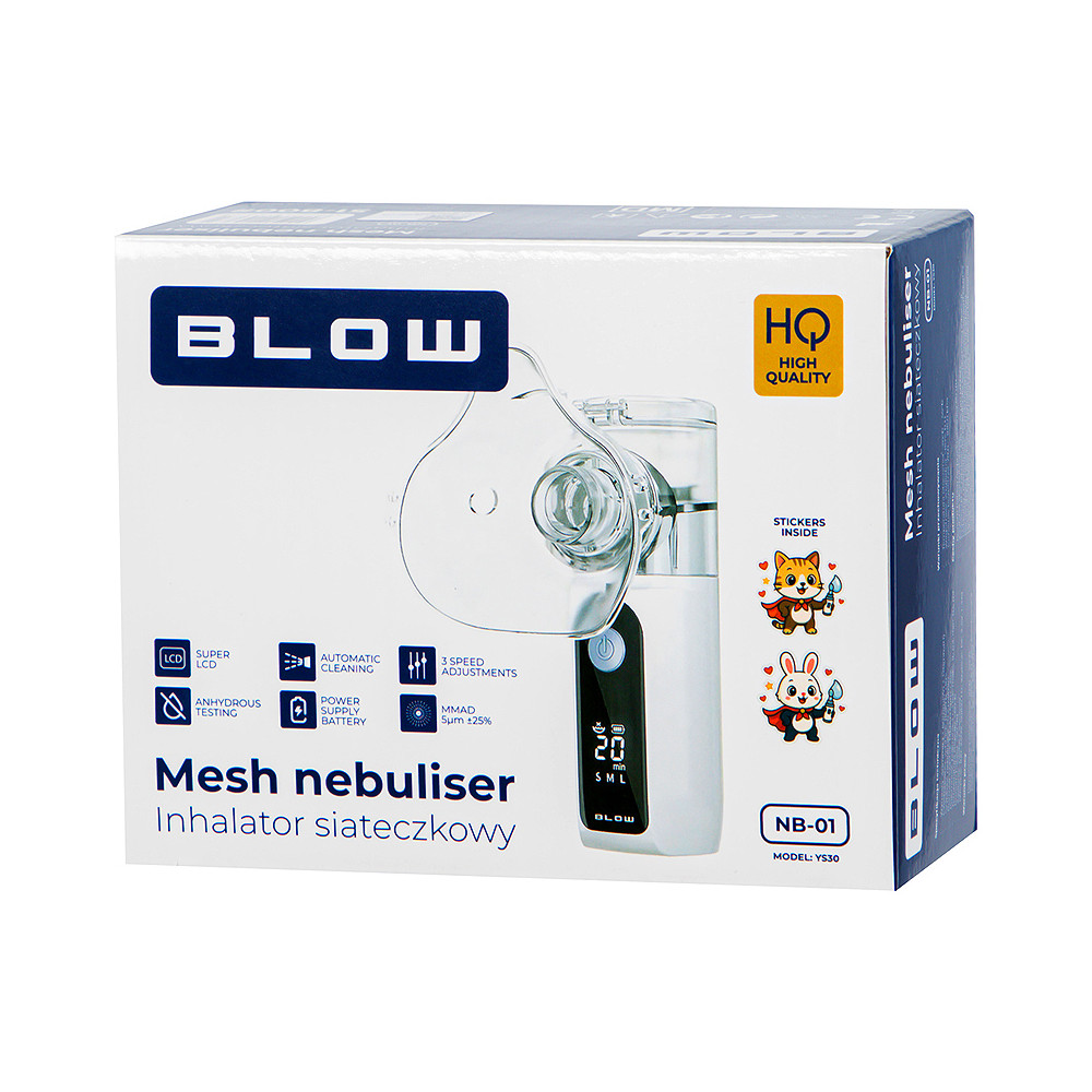 Nebulizér BLOW mesh využíva modernú vysokofrekvenčnú vibračnú technológiu na rozklad liekov na mikroskopické aerosólové častice. Vďaka tomu je inhalácia rýchla, účinná a pohodlná – bez hluku alebo straty liekov.