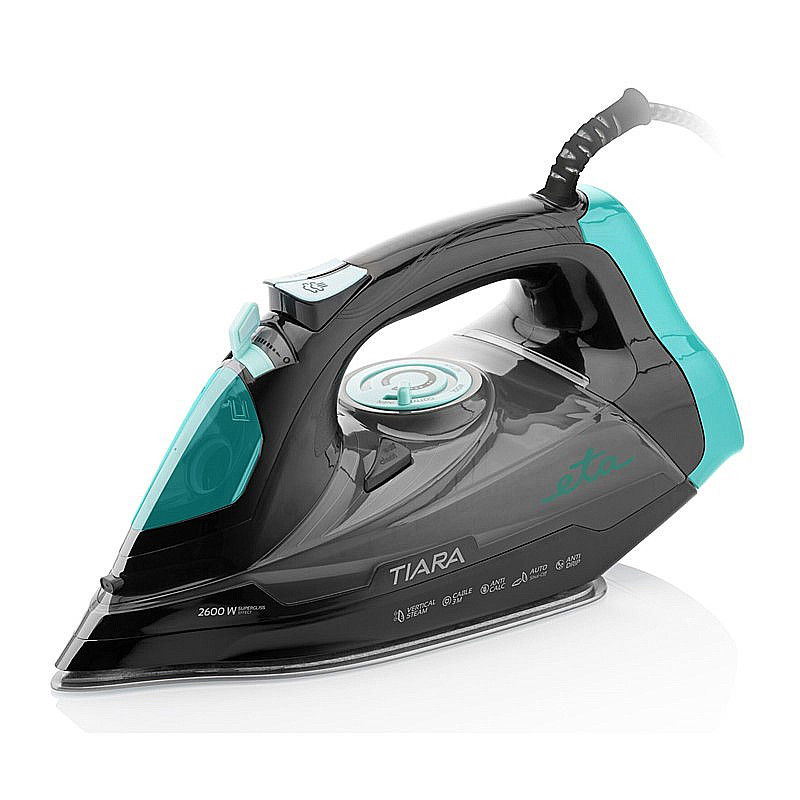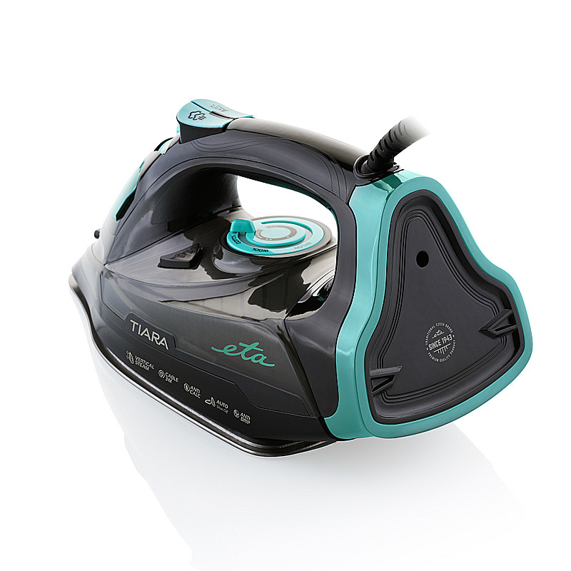 Elegantná naparovacia žehlička ETA Tiara II o príkone 2600 W umožní rýchlo dosiahnuť prevádzkovú teplotu. Objem nádržky na vodu 450 ml.