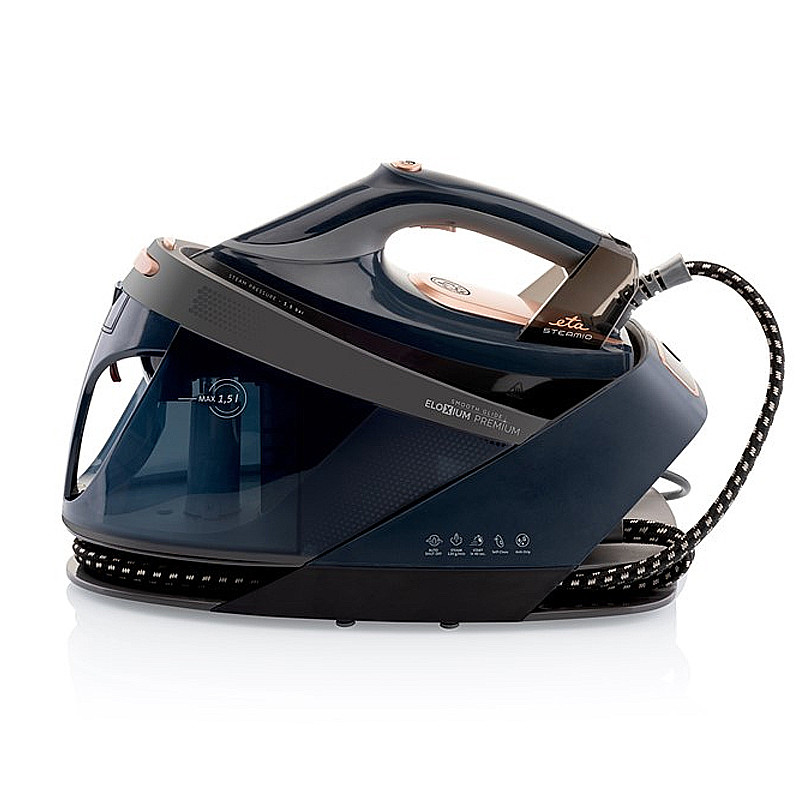 Žehlička ETA Steamio je navrhnutá tak, aby sa aj tá najmenšia nechuť k žehleniu razom vyparila. Je vybavená unikátnou žehliacou plochou Eloxium Plus, ktorá vyniká skvelou vodivosťou tepla, optimálnym rozložením teploty po žehliacej ploche, nepriľnavosťou, perfektnou kĺzavosťou a vyššou odolnosťou proti poškrabaniu.