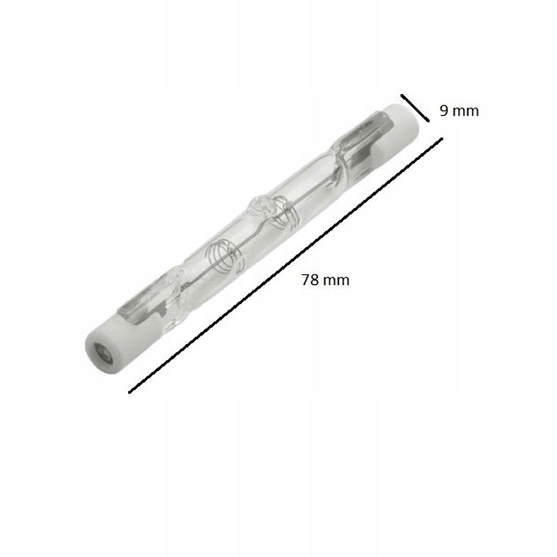 Lineárna halogénová žiarovka - pätica: R7s • výkon: 80 W • svetelný tok: 1400 lm • farba svetla: teplá biela • napätie: 230 V • trvanlivosť: 1500 hod. • celková dĺžka: 78 mm