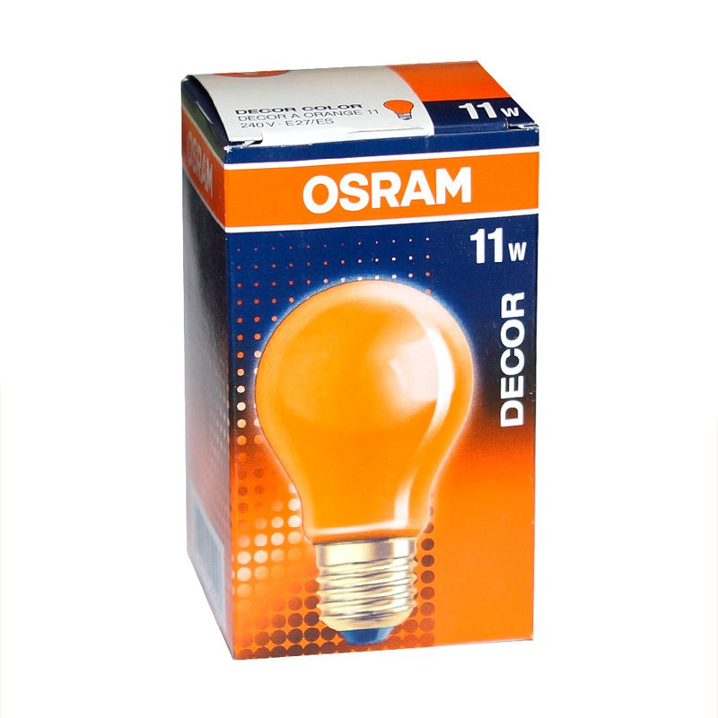Oranžová žiarovka dekoratívna, klasický tvar - pätica: E27 • výkon: 11 W • napätie: 220-240V • svetelný tok: 55 lm • farba svetla: Oranžová (1500K) • celková dĺžka: 96 mm • priemer: 55 mm