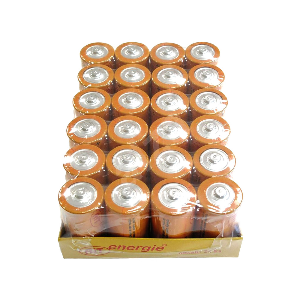 Batéria ceruzková jednorazová, veľký monočlánok, typ D, R20. Zinkochloridová batéria s napätím 1,5 V. Počet ks v balení: 24, cena je uvedená za 1 ks.